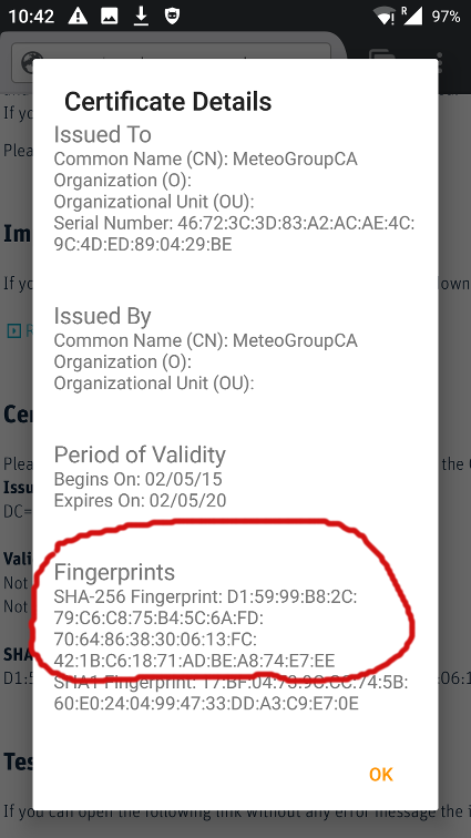 Verify that the Fingerprint-Numbers match with those listed on the webpage.