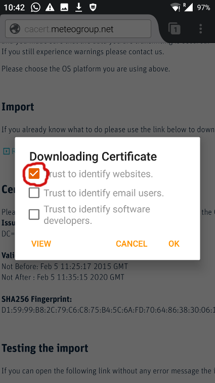 Check Box "Trust to identify websites." and click "OK".