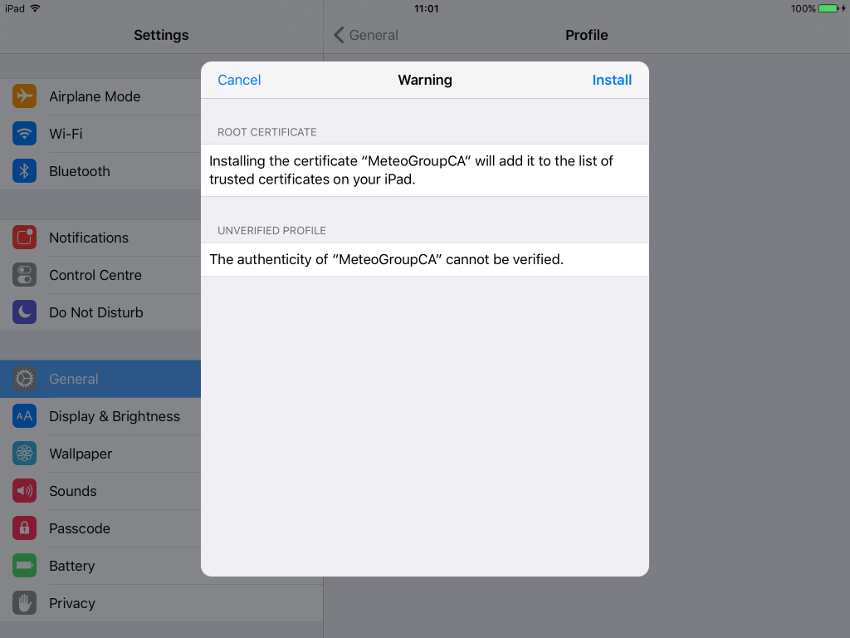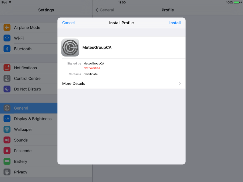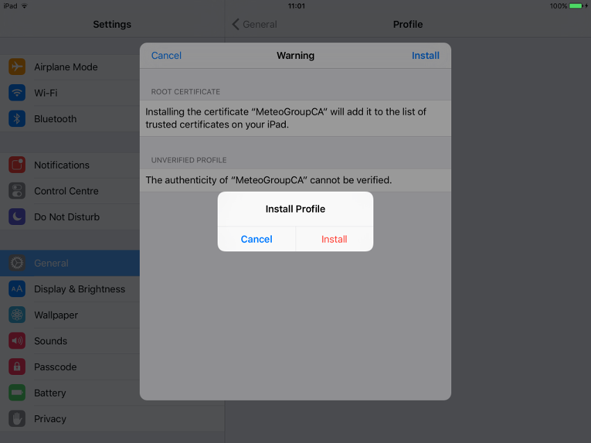 Yes we are really sure we want to install this profile. Select "Install" one more and final time.