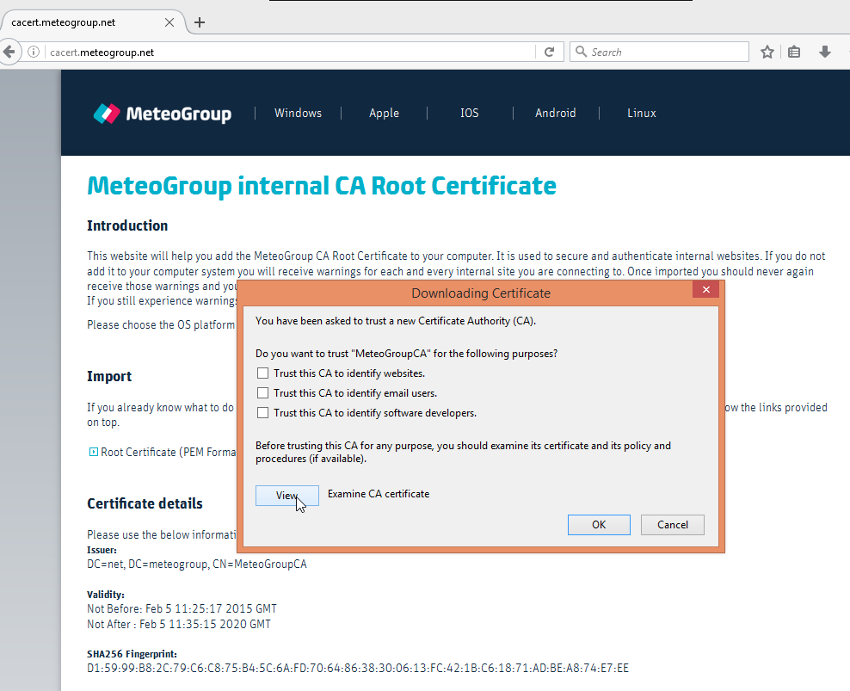 Click on the "Root Certificate (PEM Format)"-Link provided on the main page. The following dialog will appear.