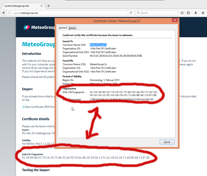 Verify that the Fingerprint-Numbers match with those listed on the webpage.